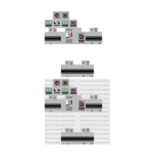 Your skin may have more colored pixels present in other regions of the template and that is OK. Some skins feature "outer layers" as part of their design (more on that below). However, if that is not the case, the white pixels surrounding the character in the sample above should render as transparent.